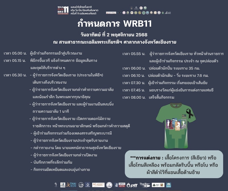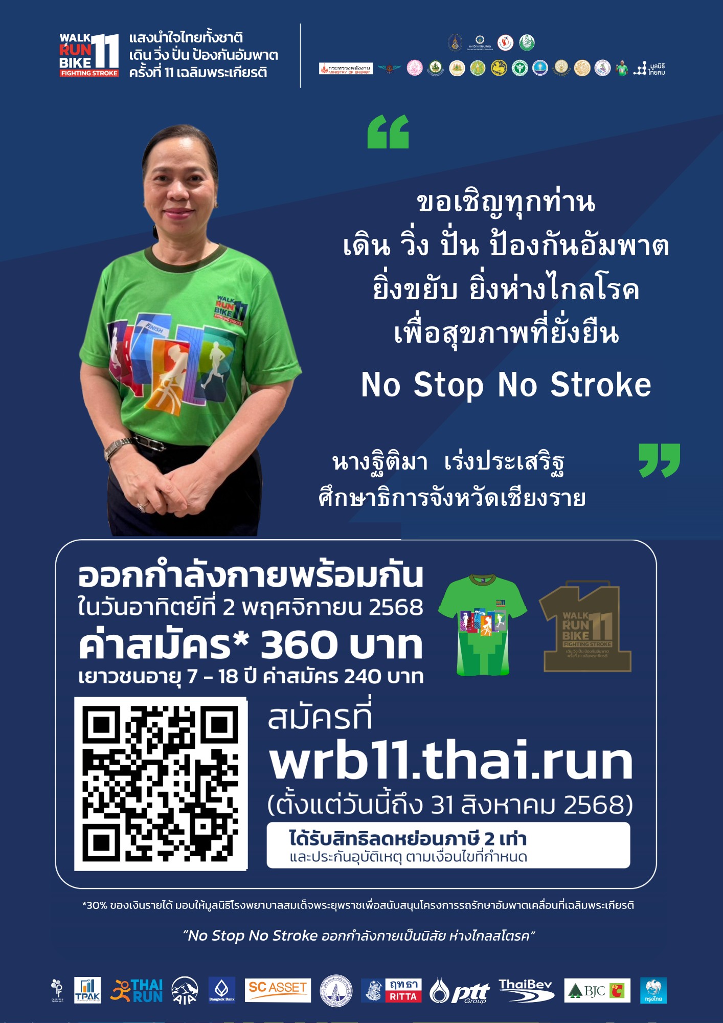 • [4/7/2568] แสงนำใจไทยทั้งชาติ เดิน-วิ่ง-ปั่น ป้องกันอัมพาต ครั้งที่ 11 เฉลิมพระเกียรติ