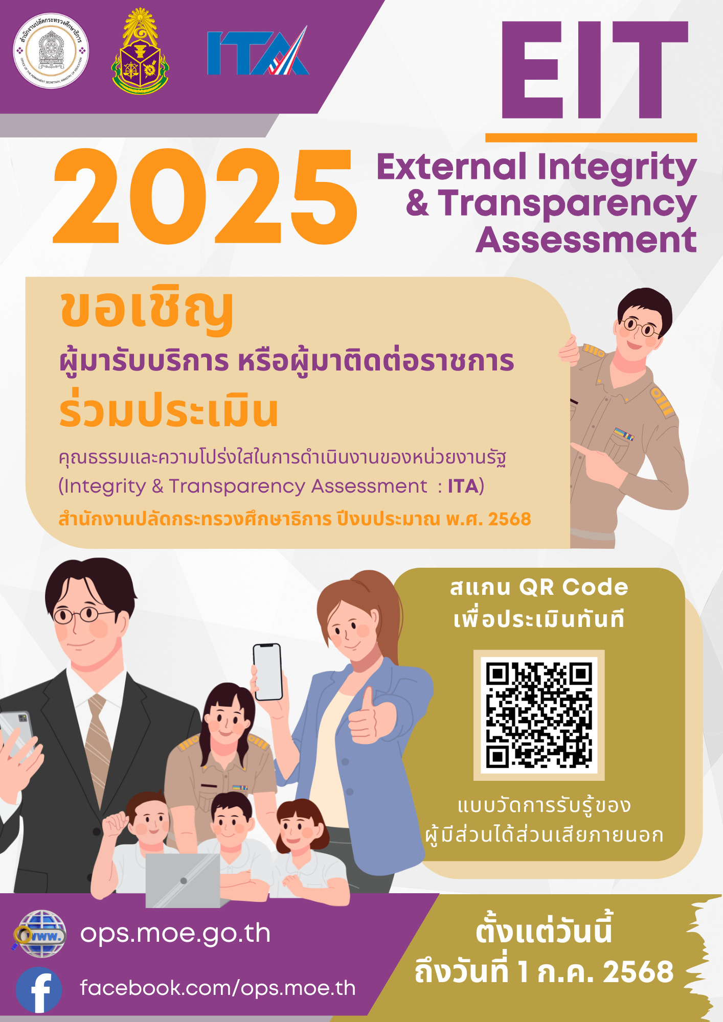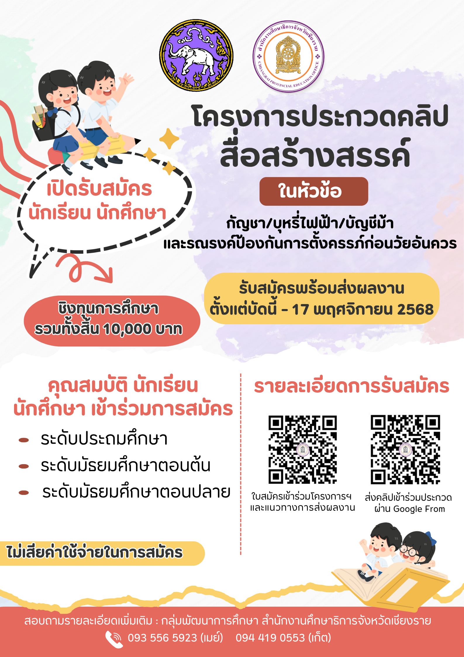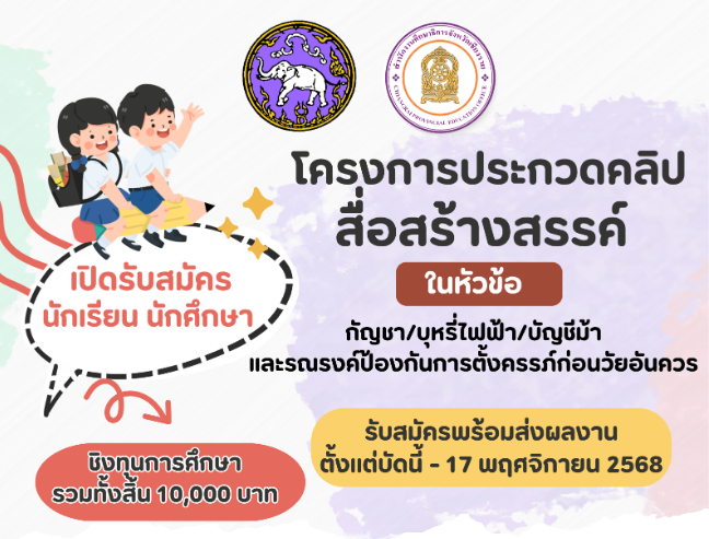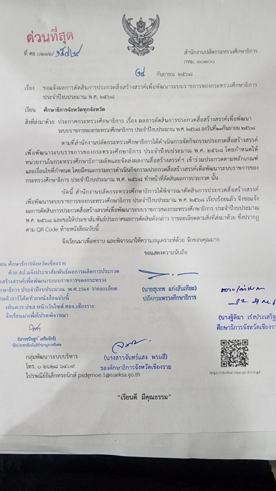 • [29/9/2568] แจ้งผลการตัดสินการประกวดสื่อสร้างสรรค์เพื่อพัฒนาระบบราชการของกระทรวงศึกษาธิการฯ