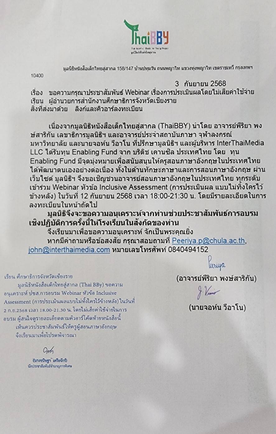 • [8/9/2568]  ปชส.การอบรม Webinar หัวข้อ Inclusive Assessment