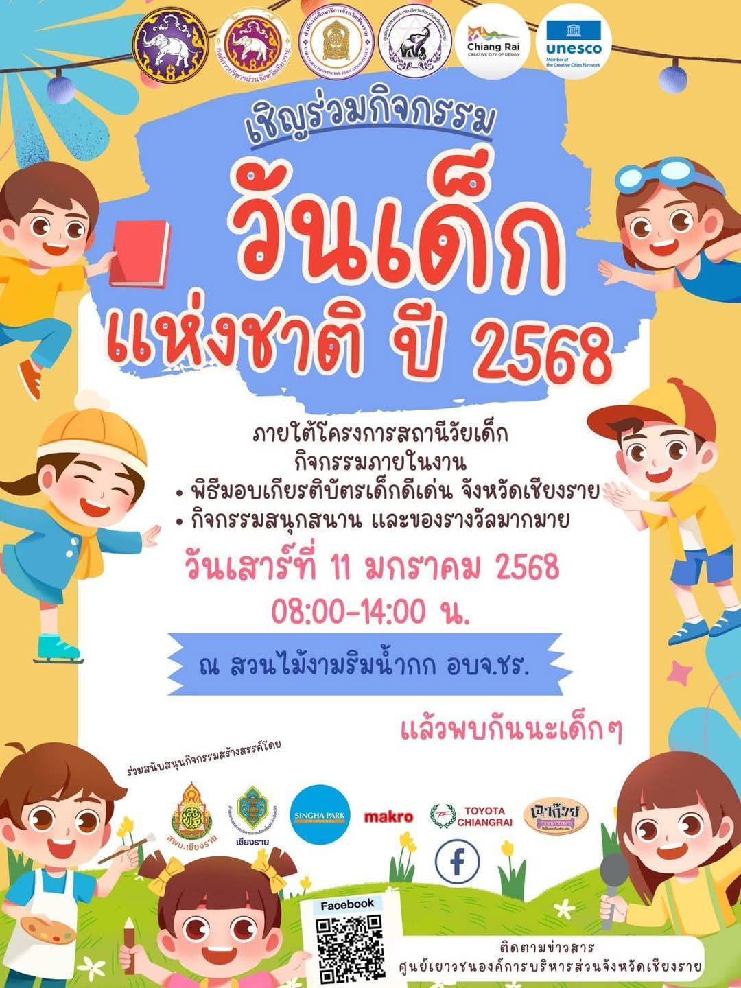 | 2 | ขอเชิญร่วมงานวันเด็กแห่งชาติ ปี 2568 ณ สวนไม้งามริมกก อบจ.ชร. | - | นายไกรพงษ์ จินดาคำ | 06/1/2568 |
