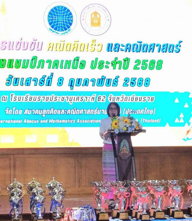 นางฐิติมา เร่งประเสริฐ ศึกษาธิการจังหวัดเชียงรายมอบหมายให้ นางสาวจันทร์แสง พรมสี รองศึกษาธิการจังหวัดเชียงราย เป็นประธานมอบรางวัลการแข่งขันคณิตคิดเร็วและคณิตศาสตร์ชิงแชมป์ภาคเหนือประจำปี 2568 ณ โรงเรียนราชประชานุเคราะห์ 62 จังหวัดเชียงราย จัดโดยสมาคมลูกคิดและคณิตศาสตร์นานาชาติประจำจังหวัดเชียงราย (ประเทศไทย)