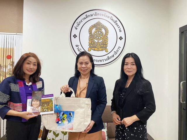 นางฐิติมา เร่งประเสริฐ ศึกษาธิการจังหวัดเชียงราย ให้ นางสาวณัฏฐนิช คำดา เจ้าหน้าที่อาวุโสโครงการพัฒนาเด็ก ซี.ซี.เอฟ เชียงราย ประจำจังหวัดเชียงราย เข้าพบเพื่อนำเสนอแผนโครงการและการดำเนินงานของมูลนิธิ ซี.ซี. เอฟ เพื่อเด็กและเยาวชน (ในพระราชูปภัมภ์สมเด็จพระเทพรัตนราชสุดาฯ สยามบรมราชกุมารี) และนำของที่ระลึกที่มีผลงานของเด็กมอบให้ศึกษาธิการจังหวัดเพื่อนำเสนอต่อสาธารณชน ณ ห้องรับรองศึกษาธิการจังหวัดเชียงราย อ.เมืองเชียงราย จ.เชียงราย