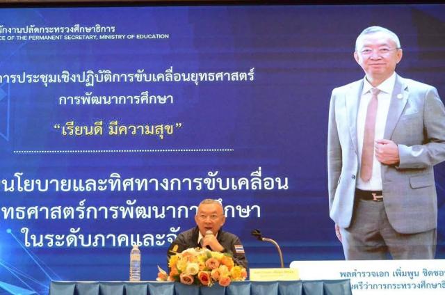 พล ต.อ. เพิ่มพูน ชิดชอบ รัฐมนตรีว่าการกระทรวงศึกษาธิการ เป็นประธานเปิดการประชุมเชิงปฏิบัติการขับเคลื่อนยุทธศาสตร์การพัฒนาการศึกษา "เรียนดี มีความสุข" และบอบนโยบายและทิศทางการขับเคลื่อนยุทธศาสตร์การพัฒนาการศึกษาในระดับภาคและจังหวัด ในการนี้ นางฐิติมา เร่งประเสริฐ ศึกษาธิการจังหวัดเชียงราย พร้อมด้วย พ.จ.ต.ฉลอง อ่อนนวน รองศึกษาธการจังหวัดเชียงราย เข้าร่วมประชุมฯ ระหว่างวันที่ 15 - 17 มีนาคม 2568 ณ โรงแรมภูเก็ตเมอร์ลิน อำเภอเมืองภูเก็ต จังหวัดกูเก็ต