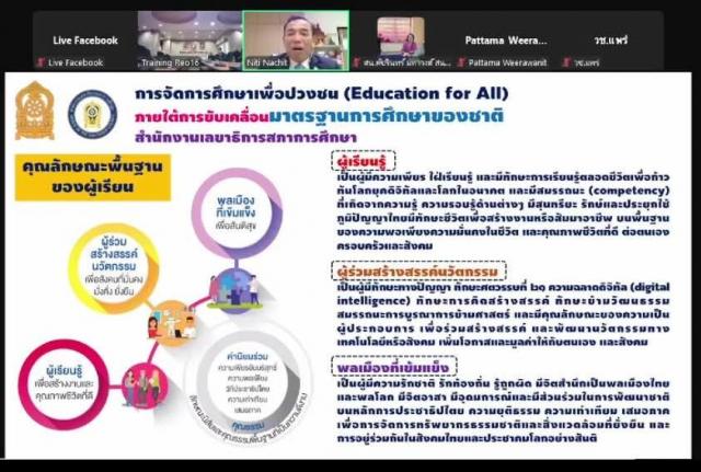 นายชาตรี ม่วงสว่าง ผู้ตรวจราชการกระทรวงศึกษาธิการ ปฏิบัติหน้าที่ศึกษาธิการภาค 16 มอบหมายให้ นางฐิติมา เร่งประเสริฐ ศึกษาธิการจังหวัดเชียงราย เป็นประธานในพิธีเปิดกิจกรรมสร้างการรับรู้ ความเข้าใจเกี่ยวกับการดำเนินงานระบบธนาคารหน่วยกิต (Credit Bank) ตามโครงการ Innovation For Thai Education (IFTE) นวัตกรรมการศึกษาเพื่อพัฒนาการศึกษา ผ่านระบบออนไลน์ โดยมี ดร.ปัทมา วีระวานิช นายกสภาสถาบันการอาชีวศึกษาภาคกลาง 4 และกรรมการผู้ทรงคุณวุฒิ สถาบันคุณวุฒิวิชาชีพ (องค์การมหาชน) ดร.นิติ นาชิต รองเลขาธิการสภาการศึกษา สำนักงานเลขาธิการสภาการศึกษา เป็นวิทยากร โดยมี ผู้อำนวยการ กลุ่มพัฒนาการศึกษากล่าวรายงาน ทั้งนี้ ผู้เข้าร่วมโครงการประกอบด้วย บุคลากรทางการศึกษาของหน่วยงาน และสถานศึกษาในพื้นที่รับผิดชอบ (จังหวัดเชียงราย น่าน พะเยา และแพร่) และบุคลากรของสำนักงานศึกษาธิการภาค 16