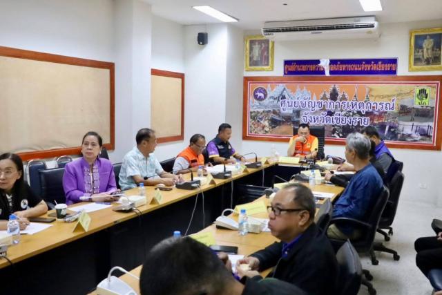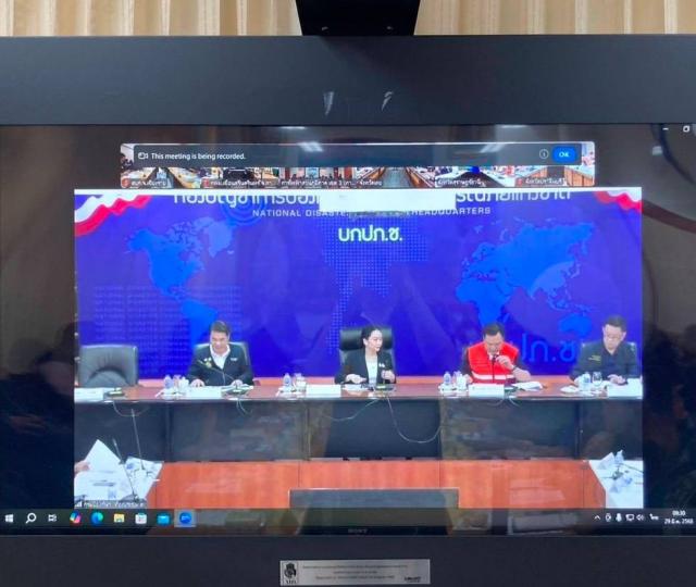 เวลา 09.30 น. ณ ห้องประชุมสำนักงานป้องกันและบรรเทาสาธารณภัยจังหวัดเชียงราย ชั้น 3 ศาลากลางจังหวัดเชียงราย นายชรินทร์ ทองสุข ผู้ว่าราชการจังหวัดเชียงราย นำหัวหน้าส่วนราชการ ที่เกี่ยวข้อง ร่วมประชุมกองบัญชาการป้องกันและบรรเทาสาธารณภัยแห่งชาติ (บกปภ.ช.) ผ่านระบบ Zoom Meeting โดยมี นางสาวแพทองธาร ชินวัตร นายกรัฐมนตรี เป็นประธานการประชุมฯ เพื่อให้การติดตามสถานการณ์ผลกระทบและ การแก้ไขปัญหาจากแผ่นดินไหวให้เป็นไปอย่างมีประสิทธิภาพ ผู้ว่าราชการจังหวัดเชียงราย จึงได้สั่งการให้ ศึกษาธิการจังหวัดเชียงราย สำรวจความเสียหายของสถานศึกษาในพื้นที่จังหวัดเชียงรายที่ได้รับผลกระทบจากเหตุการณ์แผ่นดินไหวและให้รายงานมายังศูนย์รวบรวมข้อมูลภายในวันนี้ (วันที่ 29 มีนาคม 2568)