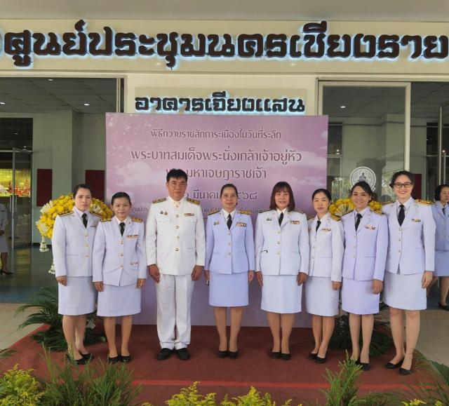 นางฐิติมา เร่งประเสริฐ ศึกษาธิการจังหวัดเชียงราย นำข้าราชการในสังกัดเข้าร่วมพิธีถวายราชสักการะเนื่องใน "วันที่ระลึกพระบาทสมเด็จพระนั่งเกล้าเจ้าอยู่หัว พระมหาเจษฎาราชเจ้า" ของจังหวัดเชียงราย ประจำปี 2568 เพื่อเป็นการน้อมรำลึกถึงพระเกียรติคุณ และแสดงความกตัญญูกตเวทีต่อพระองค์ ณ ศูนย์ประชุมและแสดงสินค้านานาชาติ GMS จังหวัดเชียงราย อำเภอเมืองเชียงราย จังหวัดเชียงราย โดยมี นายชรินทร์ ทองสุข ผู้ว่าราชการจังหวัดเชียงราย เป็นประธานในพิธี