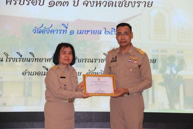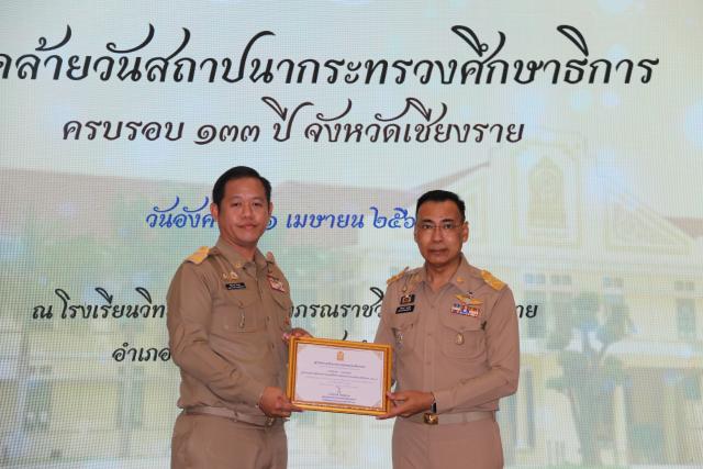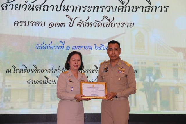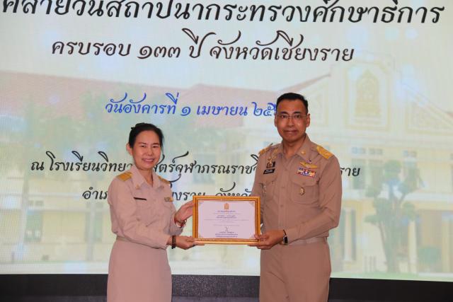 วันที่ 1 เมษายน 2568 นายชรินทร์ ทองสุข ผู้ว่าราชการจังหวัดเชียงราย เป็นประธานงานวันคล้ายวันสถาปนากระทรวงศึกษาธิการครบรอบ 133 ปี จังหวัดเชียงราย ณ หอประชุมโรงเรียนวิทยาศาสตร์จุฬาภรณราชวิทยาลัย อ.เมืองเชียงราย จ.เชียงราย โอกาสนี้ ผู้ว่าราชการจังหวัดเชียงราย ได้มอบเกียรติบัตรผู้ที่สนับสนุน การขับเคลื่อนการศึกษาในจังหวัดเชียงราย จำนวน 14 ราย ประกอบด้วย โดยสำนักงานศึกษาธิการจังหวัดเชียงราย ได้รับความเมตตาจาก (พระราชวชิรคณี : ประเสริฐ ปญญาวชิโร) เจ้าคณะจังหวัดเชียงราย นำคณะะสงฆ์ 10 รูป เจริญพระพุทธมนต์