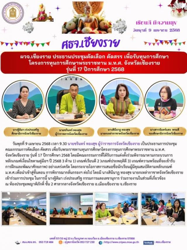 Infographic รายงานผลการปฏิบัติราชการ นางฐิติมา เร่งประเสริฐ ศึกษาธิการจังหวัดเชียงราย เดือนเมษายน 2568