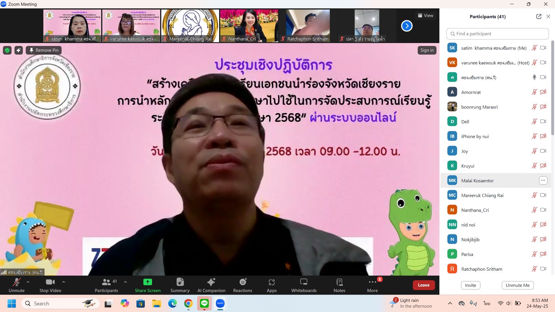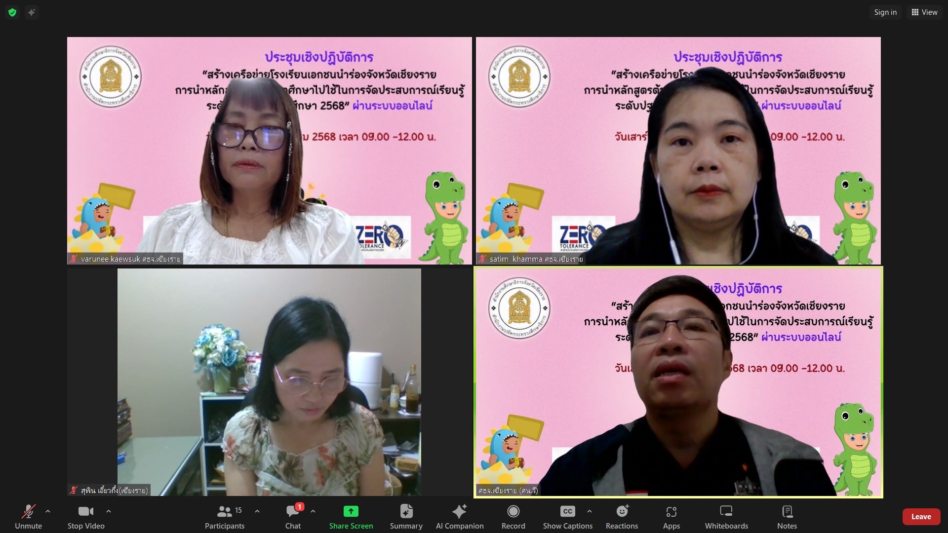 นางฐิติมา เร่งประเสริฐ ศึกษาธิการจังหวัดเชียงราย เป็นประธานการประชุมเชิงปฏิบัติการ “สร้างเครือข่ายโรงเรียนเอกชนนำร่องจังหวัดเชียงรายการนำหลักสูตรต้านทุจริตศึกษาไปใช้ในการจัดประสบการณ์เรียนรู้ ระดับปฐมวัย ปีการศึกษา 2568” ผ่านระบบออนไลน์ โดยวิทยากร ผศ.ดร.ศศิธร รณะบุตร ประธานสาขาวิชาการศึกษาปฐมวัย คณะครุศาสตร์ มหาวิทยาลัยสวนดุสิต ศูนย์การศึกษาลำปาง มีผู้บริหารโรงเรียน ครูผู้สอนระดับปฐมวัยและผู้บริหารบุคลากรจากสำนักงานศึกษาธิการจังหวัดเชียงราย เข้าร่วมประชุมผ่านระบบ Zoom Meeting