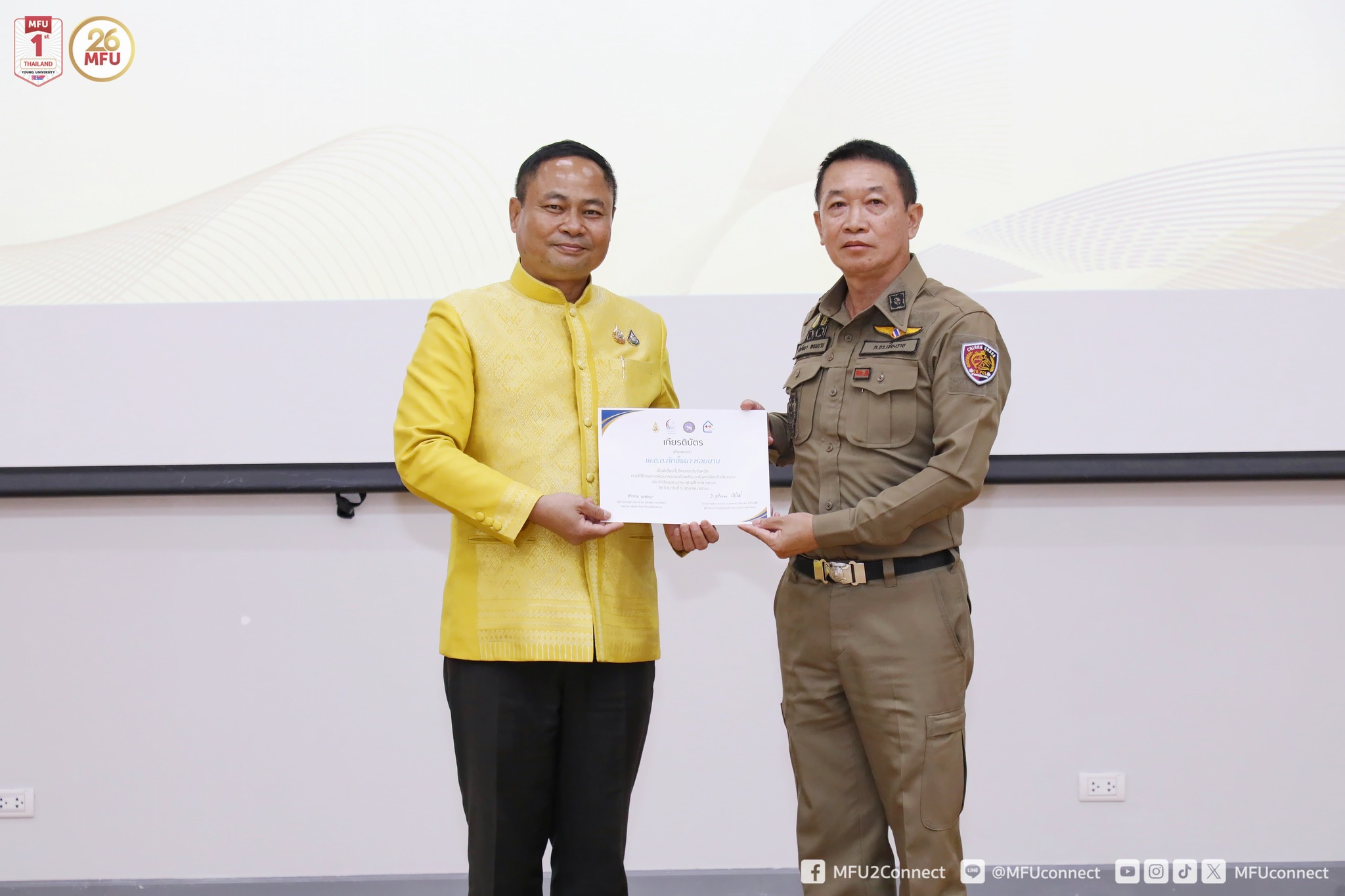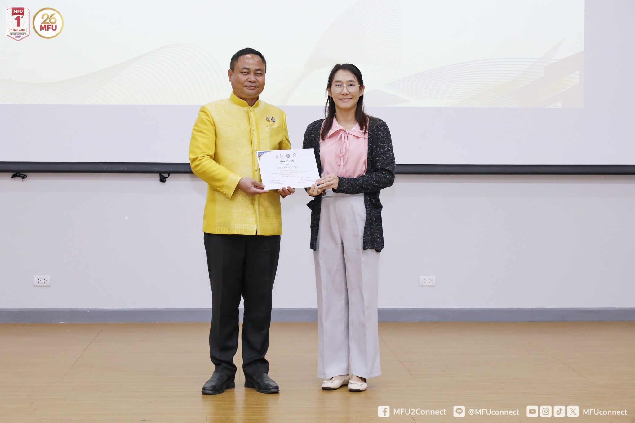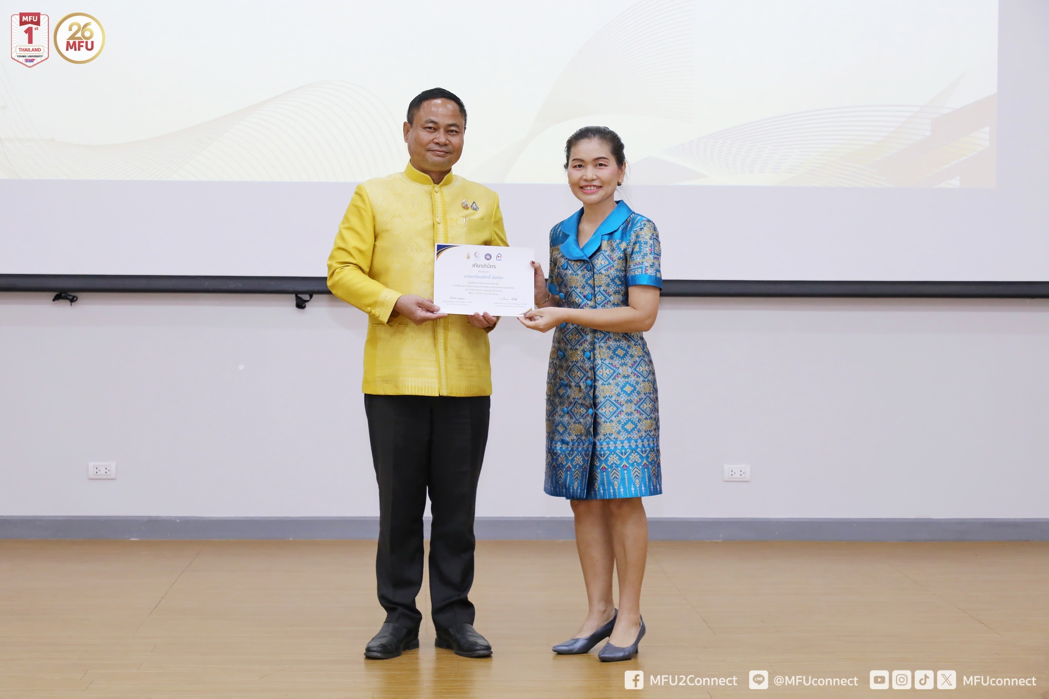 วันศุกร์ที่ 6 มิถุนายน 2568 นางฐิติมา เร่งประเสริฐ ศึกษาธิการจังหวัดเชียงราย พร้อมด้วย นางดวงคิด จรเอ้กา ศึกษานิเทศก์ชำนาญการพิเศษ นางสาวารินทร์ วิตูล นักทรัพยากรบุคคลชำนาญการพิเศษ ร่วมกิจกรรม “ครอบครัว พลังบวก เจียงฮาย จัดโดย สำนักวิชาพยาบาลศาสตร์ มหาวิทยาลัยแม่ฟ้าหลวง (มฟล.) โครงการวิจัยการพัฒนาและสนับสนุนระบบพี่เลี้ยงที่ปรึกษาในชุมชนจังหวัดเชียงราย ภายใต้โครงการครอบครัวพลังบวก (ต่อเนื่อง) ร่วมกับ ศูนย์คุณธรรม (องค์การมหาชน) โดยได้รับเกียรติจาก นายรุจติศักดิ์ รังษี รองผู้ว่าราชการจังหวัดเชียงราย เป็นประธานเปิดกิจกรรม พร้อมมอบเกียรติบัตรและโล่เกียรติคุณให้แก่คณะทำงานระดับต่าง ๆ ซึ่งเป็นหน่วยงานและเครือข่ายแกนนำพลังบวก นักวิชาการ นักวิจัย และพี่เลี้ยงที่ปรึกษาในชุมชน จังหวัดเชียงราย โดยมี ผศ.ดร.ร่มเย็น โกไศยกานนท์ รองอธิการบดี มฟล. เป็นผู้แทนอธิการบดีกล่าวต้อนรับผู้ร่วมงาน นายพิสันต์ จันทร์ศิลป์ วัฒนธรรมจังหวัดเชียงราย ประธานศูนย์ครอบครัวพลังบวก เจียงฮาย กล่าวรายงานผลสำเร็จของการดำเนินงาน ณ ห้องประชุมประดู่แดง 1 อาคารพลเอกสำเภา ชูศรี มหาวิทยาลัยแม่ฟ้าหลวง