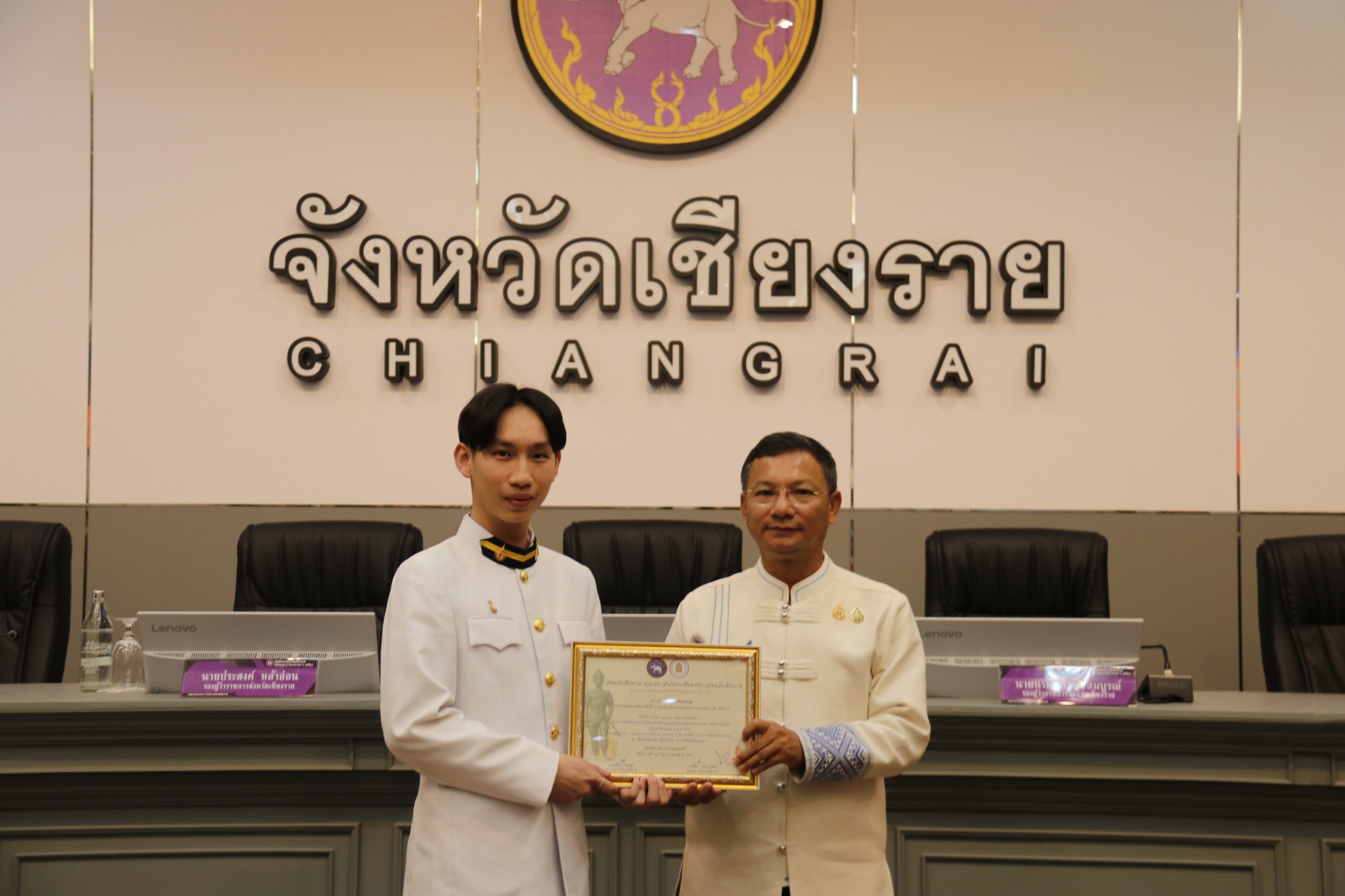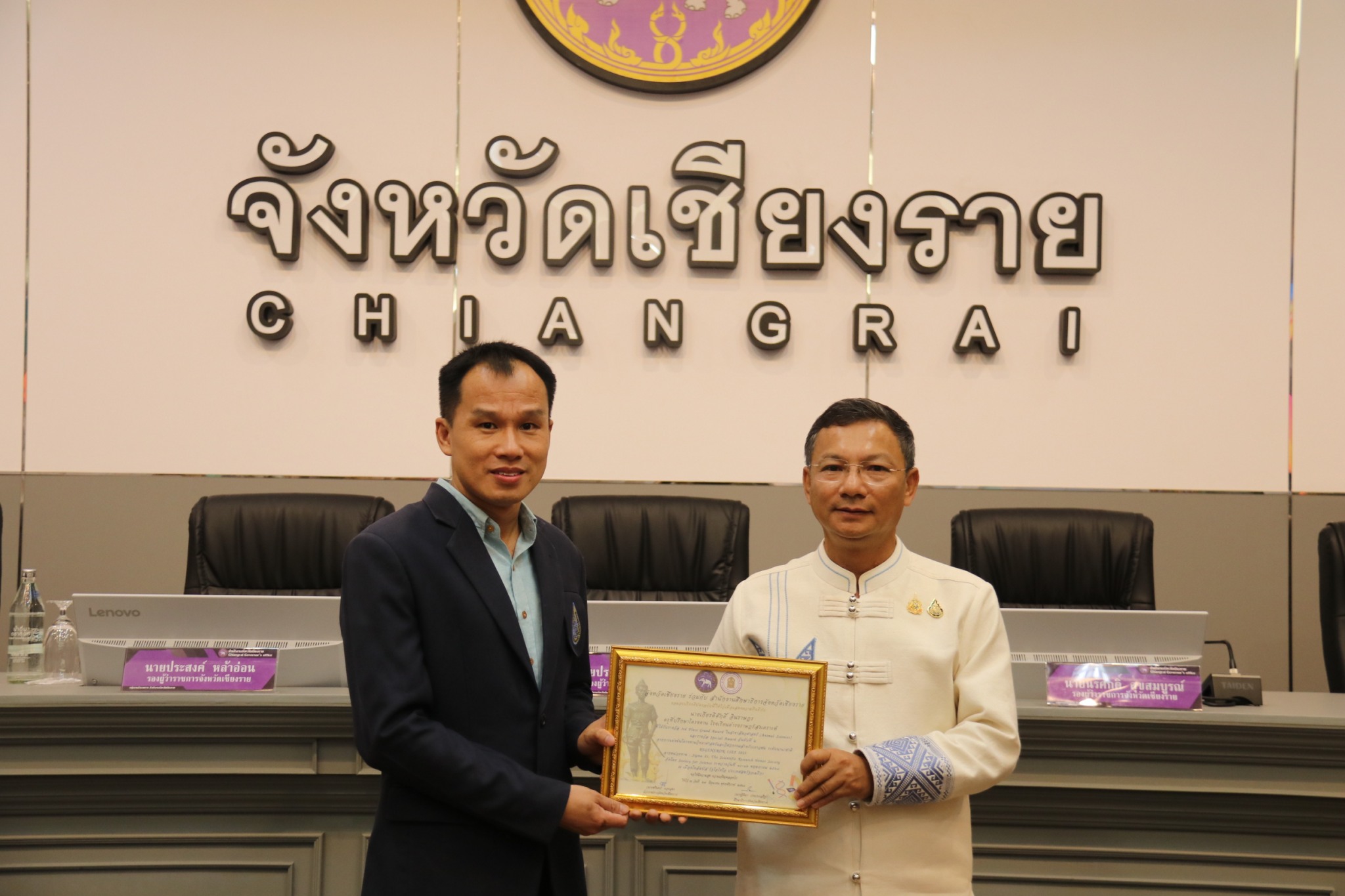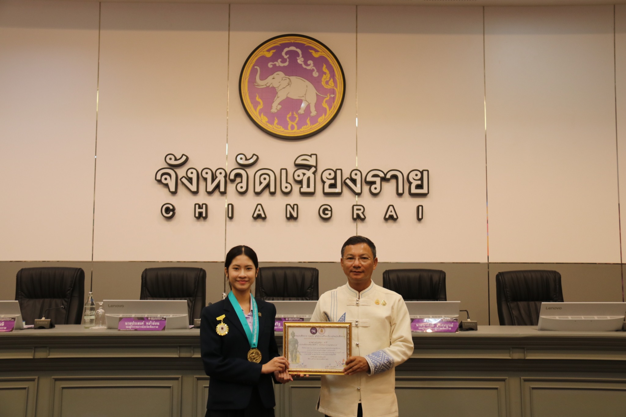 ในการนี้ นางฐิติมา เร่งประเสริฐ ศึกษาธิการจังหวัดเชียงราย มอบหมายให้ พ.จ.ต.ฉลอง อ่อนนวน รองศึกษาธิการจังหวัดเชียงราย นำ ผู้อำนวยการโรงเรียน ครูที่ปรึกษา และนักเรียนเข้ารับเกียรติบัตรและรางวัล ณ ห้องประชุมจอมกิตติศาลากลางจังหวัดเชียงราย