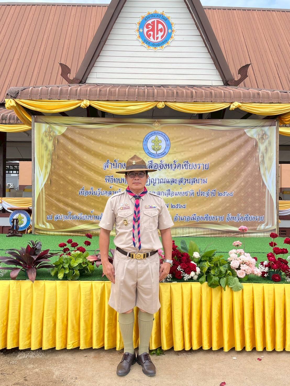 นางฐิติมา เร่งประเสริฐ ศึกษาธิการจังหวัดเชียงราย มอบหมายให้ พ.จ.ต.ฉลอง อ่อนนวน รองศึกษาธิการจังหวัดเชียงราย และเจ้าหน้าที่กลุ่มลูกเสือ ยุวกาชาดและกิจการนักเรียน ร่วมประกอบพิธีทบทวนคำปฏิญาณ และสวนสนาม เนื่องในวันคล้ายวันสถาปนาคณะลูกเสือแห่งชาติ ประจำปี 2568 ณ สนามโรงเรียนบ้านสันโค้ง(เชียงรายจรูญราษฎร์) อำเภอเมืองเชียงราย จังหวัดเชียงราย โดยมี นายประเสริฐ จิตต์พลีชีพ รองผู้ว่าราชการจังหวัดเชียงราย เป็นประธาน