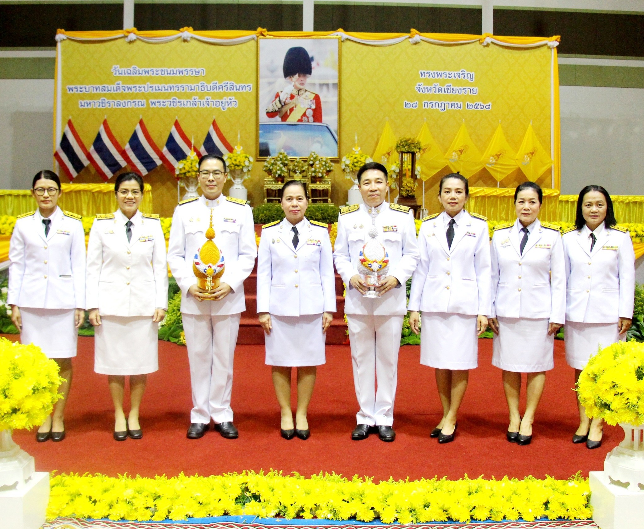 นายชรินทร์ ทองสุข ผู้ว่าราชการจังหวัดเชียงราย เป็นประธานในพิธีถวายเครื่องราชสักการะและวางพานพุ่มและพิธีจุดเทียนถวายพระพรชัยมงคล เนื่องในโอกาสวันเฉลิมพระชนมพรรษา พระบาทสมเด็จพระปรเมนทรรามาธิบดีศรีสินทร มหาวชิราลงกรณ พระวชิรเกล้าเจ้าอยู่หัว ณ ศูนย์แสดงสินค้านานาชาติ GMS อ.เมืองเชียงราย จ.เชียงราย ในการนี้ นางฐิติมา เร่งประเสริฐ ศึกษาธิการจังหวัดเชียงราย นำข้าราชการสังกัดสำนักงานศึกษาธิการจังหวัดเชียงราย เข้าร่วมพิธีดังกล่าว ณ สถานที่ข้างต้น