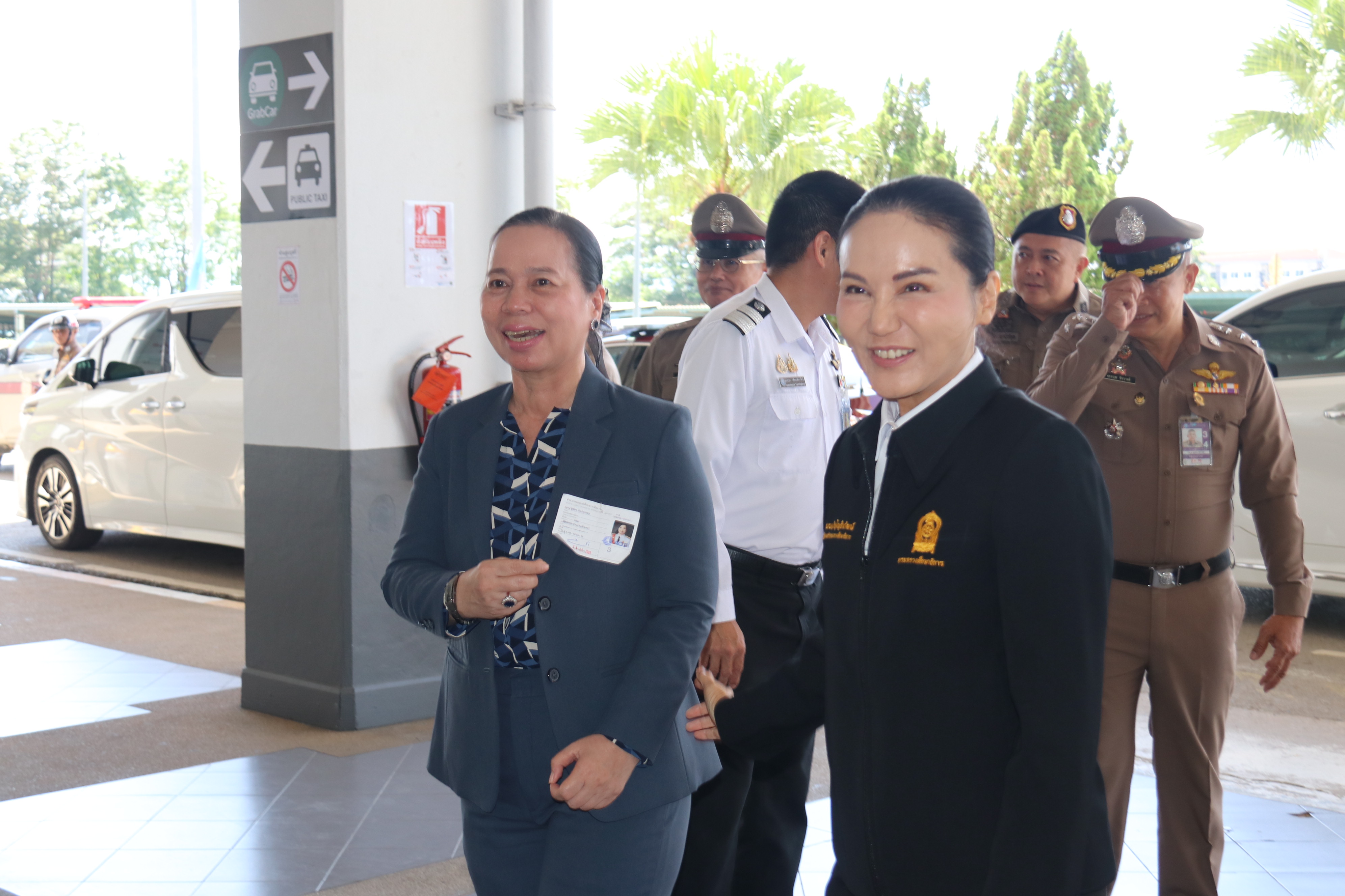 วันที่ 18 สิงหาคม พ.ศ. 2568 นางฐิติมา เร่งประเสริฐ ศึกษาธิการจังหวัดเชียงราย พร้อมด้วย นายชรินทร์ ทองสุข ผู้ว่าราชการจังหวัดเชียงราย นายประเสริฐ จิตต์พลีชีพ รองผู้ว่าราชการจังหวัดเชียงราย ให้การต้อนรับ ศ.ดร.นฤมล ภิญโญสินวัฒน์ รมว.ศธ ในโอกาสลงพื้นที่ตรวจเยี่ยมให้กำลังใจและมอบถุงยังชีพช่วยเหลือแก่ผู้บริหาร คณะครูบุคลากรและและนักเรียน ที่ได้รับผลกระทบจากสถานการณ์อุทกภัยในพื้นที่จังหวัดพะเยา เนื่องมาจากพายุโชนร้อน "วิภา" ในพื้นที่จังหวัดพะเยา ระหว่างวันที่ 17-18 สิงหาคม 2568 ในการนี้ ดร.อรพิน ดวงแก้ว ผอ.วิทยาลัยอาชีวศึกษาเชียงราย นำนักศึกษาโปรแกรมการโรงแรม มาให้ผลผลิตของวิทยาลัยมาบริการรัฐมนตรีฯ และณะ ณ ท่าอากาศยานแม่ฟ้าหลวง จังหวัดเชียงราย