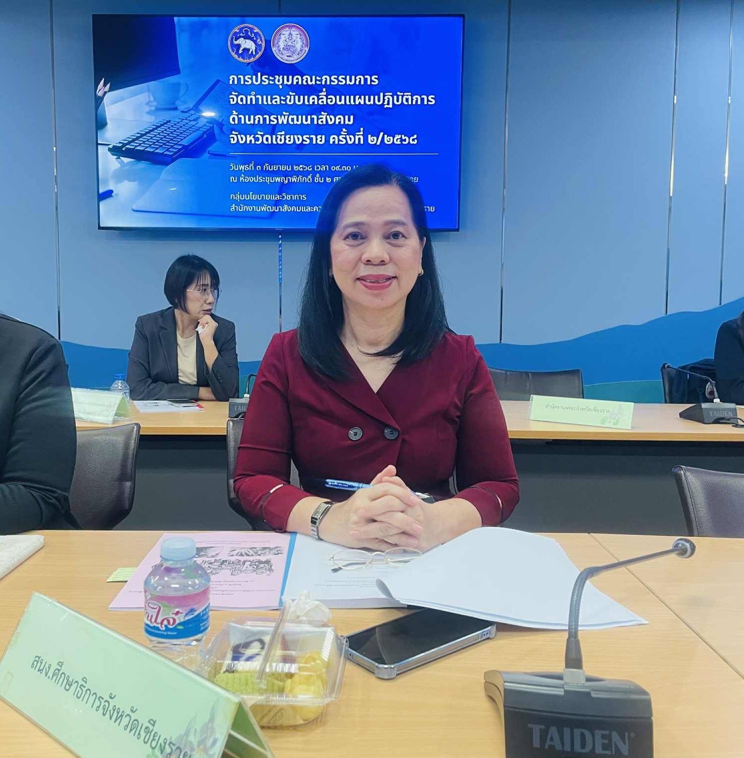 วันที่ 3 กันยายน 2568 นางฐิติมา เร่งประเสริฐ ศึกษาธิการจังหวัดเชียงราย เข้าร่วมประชุมคณะกรรมการจัดทำและขับเคลื่อนแผนปฏิบัติการด้านการพัฒนาสังคมจังหวัดเชียงราย ครั้งที่ 2/2568 จัดโดย กลุ่มนโยบายและวิชาการ สำนักงานพัฒนาสังคมและความมั่นคงของมนุษย์จังหวัดเชียงราย ณ ห้องประชุมพญาพิภักดิ์ ชั้น 2 ศาลากลางจังหวัดเชียงราย เพื่อรับฟังการรายงานผลการดำเนินงานตามแผนปฏิบัติการด้านการพัฒนาสังคมจังหวัดเชียงราย ประจำปีงบประมาณ พ.ศ. 2568 ในการตอบสถานการณ์ปัญหาทางสังคมทั้งในเชิงประเด็นและกลุ่มเป้าหมายของจังหวัดเชียงราย ซึ่งได้บรรลุตามค่าเป้าหมายของแผนฯ ที่กำหนดไว้ทั้งหมด 8 ด้าน นอกจากนี้ ที่ประชุมยังได้พิจารณาแนวทางการรายงานผลผลิต ผลลัพธ์ ปัจจัยความสำเร็จ ตลอดจนข้อเสนอแนะจากการดำเนินโครงการ/กิจกรรมต่าง ๆ เพื่อนำมาประมวลเป็นข้อมูลประกอบการบูรณาการจัดทำและขับเคลื่อนแผนปฏิบัติการฯ รวมถึงการทำงานร่วมกันของหน่วยงานภาคีในปีงบประมาณ พ.ศ. 2569 ต่อไป ในการนี้นายประสงค์ หล้าอ่อน รองผู้ว่าราชการจังหวัดเชียงราย เป็นประธานในการประชุมฯ