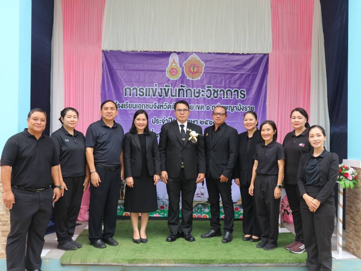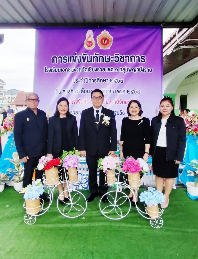 วันที่ 8 พฤศจิกายน 2568 นางฐิติมา เร่งประเสริฐ ศึกษาธิการจังหวัดเชียงราย มอบหมายให้ พ.จ.ต.ฉลอง อ่อนนวน รองศึกษาธิการจังหวัดเชียงราย เป็นประธานเปิดการแข่งขันทักษะวิชาการโรงเรียนเอกชน จังหวัดเชียงราย เขต 1 (กลุ่มพญามังราย) ประจำปีงบประมาณ 2568 พร้อมด้วย นางสุพิน เอี้ยวถึ้ง ผู้อำนวยการกลุ่มส่งเสริมการศึกษาเอกชน ณ หอประชุมอนุสรณ์ 100 ปี โรงเรียนเชียงรายวิทยาคม อำเภอเมือง จังหวัดเชียงราย การแข่งขันทักษะวิชาการ ในครั้งนี้เป็นโอกาสสำคัญในการส่งเสริมการเรียนรู้ และพัฒนาความสามารถของนักเรียนด้านวิชาการ หรือทักษะอื่นๆ ที่จะช่วยเตรียมความพร้อมให้กับนักเรียนในอนาคต เป็นการสร้างความสัมพันธ์อันดีระหว่างโรงเรียนในพื้นที่ เพื่อร่วมมือกันยกระดับการศึกษาให้มีคุณภาพยิ่งขึ้น