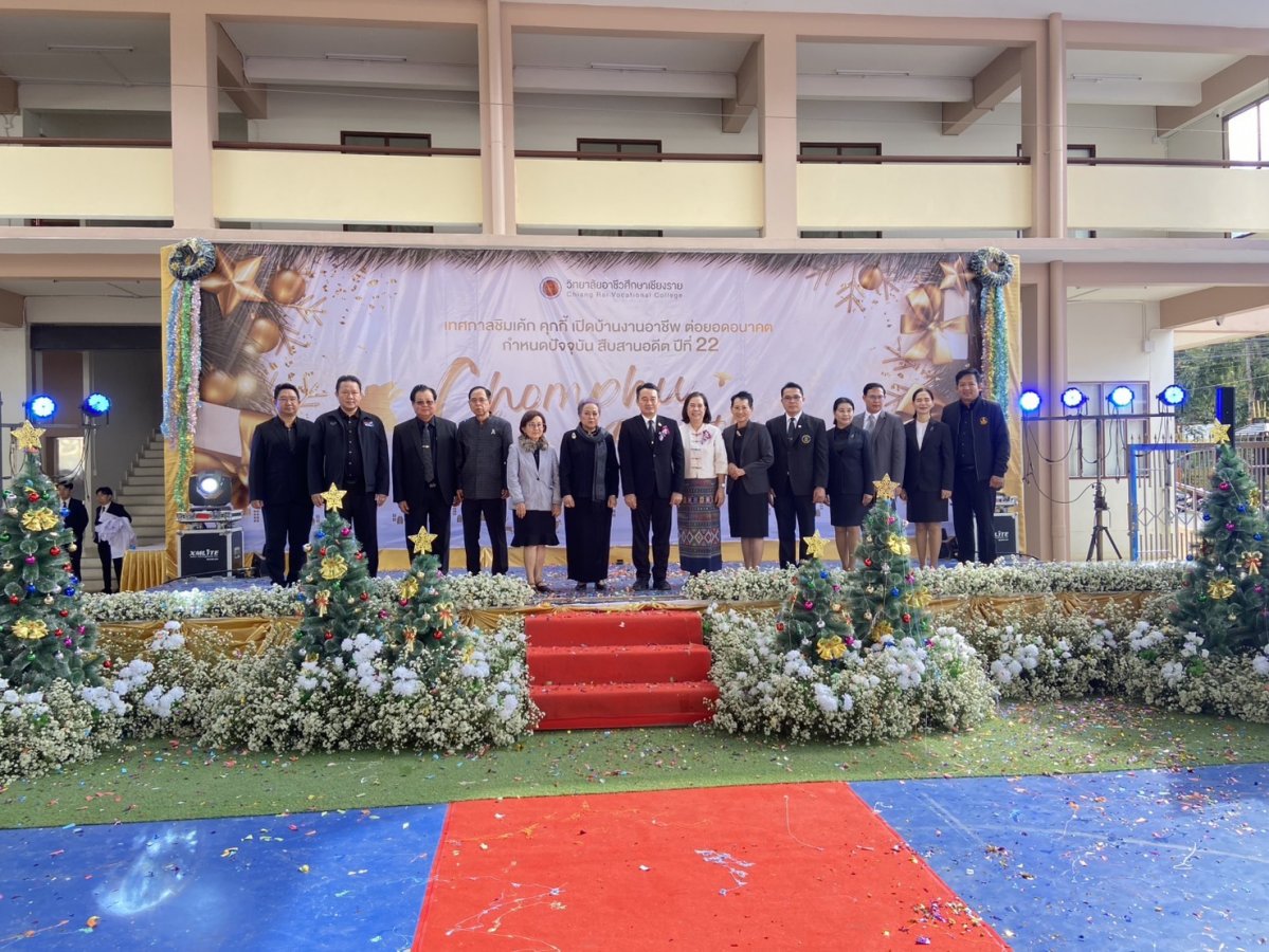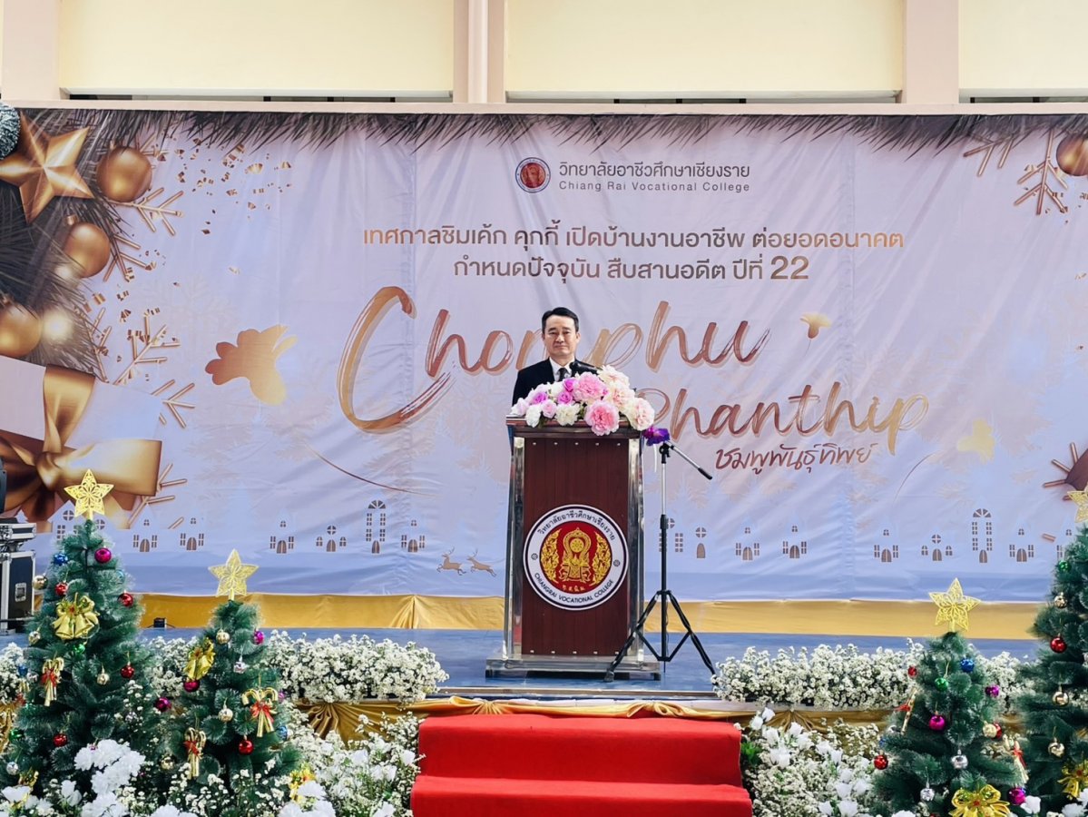 นางฐิติมา เร่งประเสริฐ ศึกษาธิการจังหวัดเชียงราย มอบหมายให้ พ.จ.ต.ฉลอง อ่อนนวน รองศึกษาธิการจังหวัดเชียงราย เข้าร่วมพิธีเปิดงานเทศกาลคุกกี้ เค้ก และของขวัญปีใหม่ ประจำปี 2569 “ ชิมเค้ก เปิดบ้าน งานอาชีพ ต่อยอดอนาคต กำหนดปัจจุบัน สืบสาน อดีต ปีที่ 22 ” ณ วิทยาลัยอาชีวศึกษาเชียงราย อำเภอเมืองเชียงราย จังหวัดเชียงราย เพื่อเป็นการสนองนโยบายของสำนักงานคณะกรรมการการอาชีวศึกษา กระทรวงศึกษาธิการ ในการผลิตและพัฒนากำลังคนอาชีว ศึกษาที่มีสมรรถนะสูง เพื่อการพัฒนาประเทศ ผ่านการแสดงและจำหน่ายผลงานของนักเรียน นักศึกษา ตลอดจนสนับสนุนการพัฒนาทักษะด้านอาชีพความคิดสร้างสรรค์ และการเรียนรู้จากประสบการณ์จริง พร้อมเชื่อมโยงสถานศึกษา ชุมชน และภาคีเครือข่าย สะท้อนความสำคัญของการพัฒนาอาชีวศึกษาคุณภาพอย่างยั่งยืน โดยมี นายสง่า แต่เชื้อสาย รองเลขาธิการคณะกรรมการการอาชีวศึกษา เป็นประธานในพิธีเปิดงาน