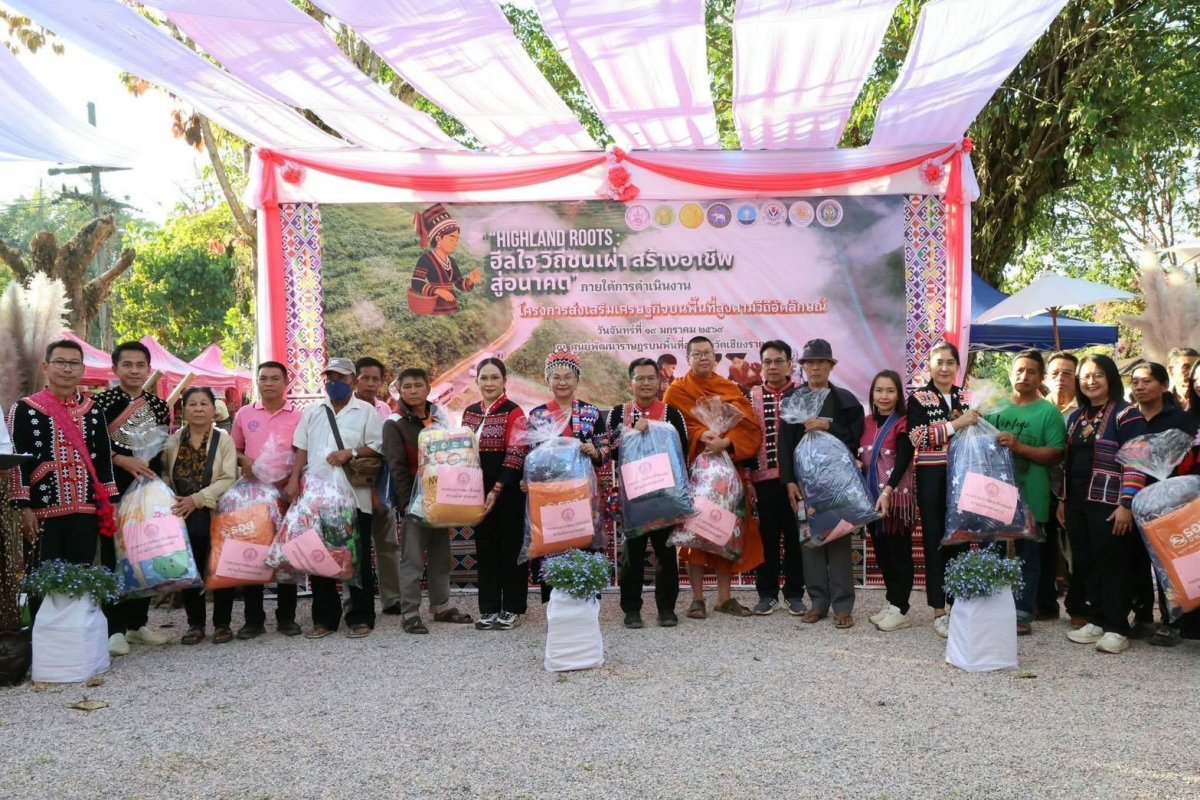 นางฐิติมา เร่งประเสริฐ ศึกษาธิการจังหวัดเชียงราย พร้อมด้วย พ.จ.ต.ฉลอง อ่อนนวน รองศึกษาธิการจังหวัดเชียงราย และบุคลากรในสังกัด เข้าร่วมพิธีเปิดกิจกรรม “HIGHLAND ROOTS ฮีลใจ วิถีชนเผ่า สร้างอาชีพสู่อนาคต” ภายใต้ โครงการส่งเสริมเศรษฐกิจบนพื้นที่สูงตามวิถีอัตลักษณ์ โดยมี นายอัครา พรหมเผ่า รัฐมนตรีว่าการกระทรวงการพัฒนาสังคมและความมั่นคงของมนุษย์ ให้เกียรติเป็นประธานในพิธีเปิด ณ ลานจอดเฮลิคอปเตอร์ ศูนย์พัฒนาราษฎรบนพื้นที่สูงจังหวัดเชียงราย การจัดกิจกรรมดังกล่าวเป็นการขับเคลื่อนภารกิจตามนโยบายสำคัญของกระทรวงการพัฒนาสังคมและความมั่นคงของมนุษย์ (พม.) ที่มุ่งเน้นการ ลดรายจ่ายในครัวเรือน สร้างรายได้ และรีสตาร์ทชีวิตให้กับประชาชน โดยเฉพาะกลุ่มชาติพันธุ์และประชาชนบนพื้นที่สูง ผ่านการส่งเสริมการตลาด การสร้างการรับรู้ต่อผลิตภัณฑ์ชุมชนและการเพิ่มช่องทางการจำหน่ายสินค้า ทั้งนี้ โครงการดังกล่าวมุ่งยกระดับคุณภาพชีวิตของกลุ่มผู้ผลิตบนพื้นฐานของการอนุรักษ์อัตลักษณ์ วิถีชีวิต และภูมิปัญญาท้องถิ่น ควบคู่กับการพัฒนาเศรษฐกิจฐานรากอย่างยั่งยืน เพื่อเสริมสร้างความเข้มแข็งให้แก่ชุมชนและสร้างโอกาสในการประกอบอาชีพอย่างมั่นคงต่อไป