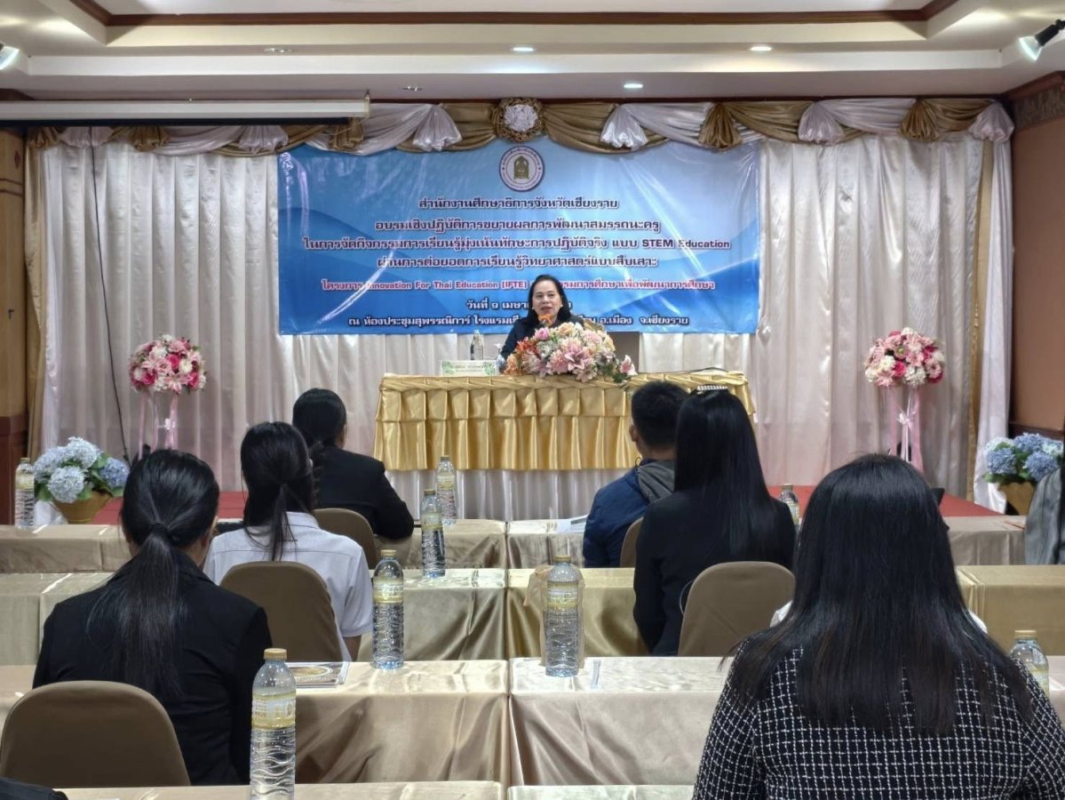 นางฐิติมา เร่งประเสริฐ ศึกษาธิการจังหวัดเชียงราย เป็นประธานโครงการขยายผลการใช้คู่มือกิจกรรมการเรียนรู้มุ่งเน้นทักษะการปฏิบัติจริงแบบ STEM Education ผ่านการต่อยอดการเรียนรู้วิทยาศาสตร์แบบสืบเสาะ สําหรับระดับชั้นประถมศึกษา พร้อมด้วยนางสาวจันทร์แสง พรมสี รองศึกษาธิการจังหวัดเชียงราย วัตถุประสงค์เพื่อส่งเสริมและพัฒนาครูในจังหวัดเชียงรายให้มีทักษะและความสามารถในการจัดกิจกรรมการเรียนรู้และการจัดการเรียนการสอนที่มุ่งเน้นทักษะการปฏิบัติจริงแบบ STEM Education โดยการต่อยอดการเรียนรู้วิทยาศาสตร์แบบสืบเสาะอย่างมีประสิทธิภาพ มีผู้เข้าร่วมอบรม จํานวนรวม 40 คน จาก 9 หน่วยงานทางการศึกษาในจังหวัดเชียงราย ณ โรงแรมเชียงรายแกรนด์รูม อ.เมืองเชียงราย จ.เชียงราย