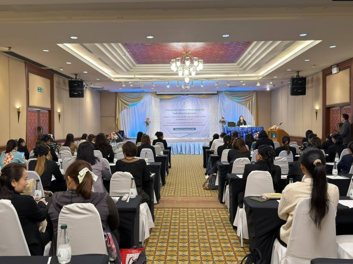 นางฐิติมา เร่งประเสริฐ ศึกษาธิการจังหวัดเชียงราย เป็นประธานในพิธีเปิดการอบรมเชิงปฏิบัติการพัฒนาครูปฐมวัยในพื้นที่จังหวัดเชียงราย หลักสูตร “การใช้หลักสูตรการศึกษาปฐมวัย พุทธศักราช 2568 สำหรับเด็กอายุ 3 – 6 ปี” สำหรับครูผู้สอนระดับปฐมวัย สังกัดสำนักงานคณะกรรมการส่งเสริมการศึกษาเอกชน (สช) พร้อมด้วยนางสาวจันทร์แสง พรมสี รองศึกษาธิการจังหวัดเชียงราย ศึกษานิเทศก์ในสังกัดสำนักงานศึกษาธิการจังหวัดเชียงราย เข้าร่วมกิจกรรม โดยมี นายบรรพต ขันคำ และนางสาวอิชยาพัฒน์ มณีรัตน์ ศึกษานิเทศก์ สำนักงานเขตพื้นที่การศึกษาประถมศึกษาเชียงราย เขต 1 เป็นวิทยากรให้ความรู้ ณ ห้องประชุมโรงแรมเวียงอินทร์ อ.เมืองเชียงราย จ.เชียงราย