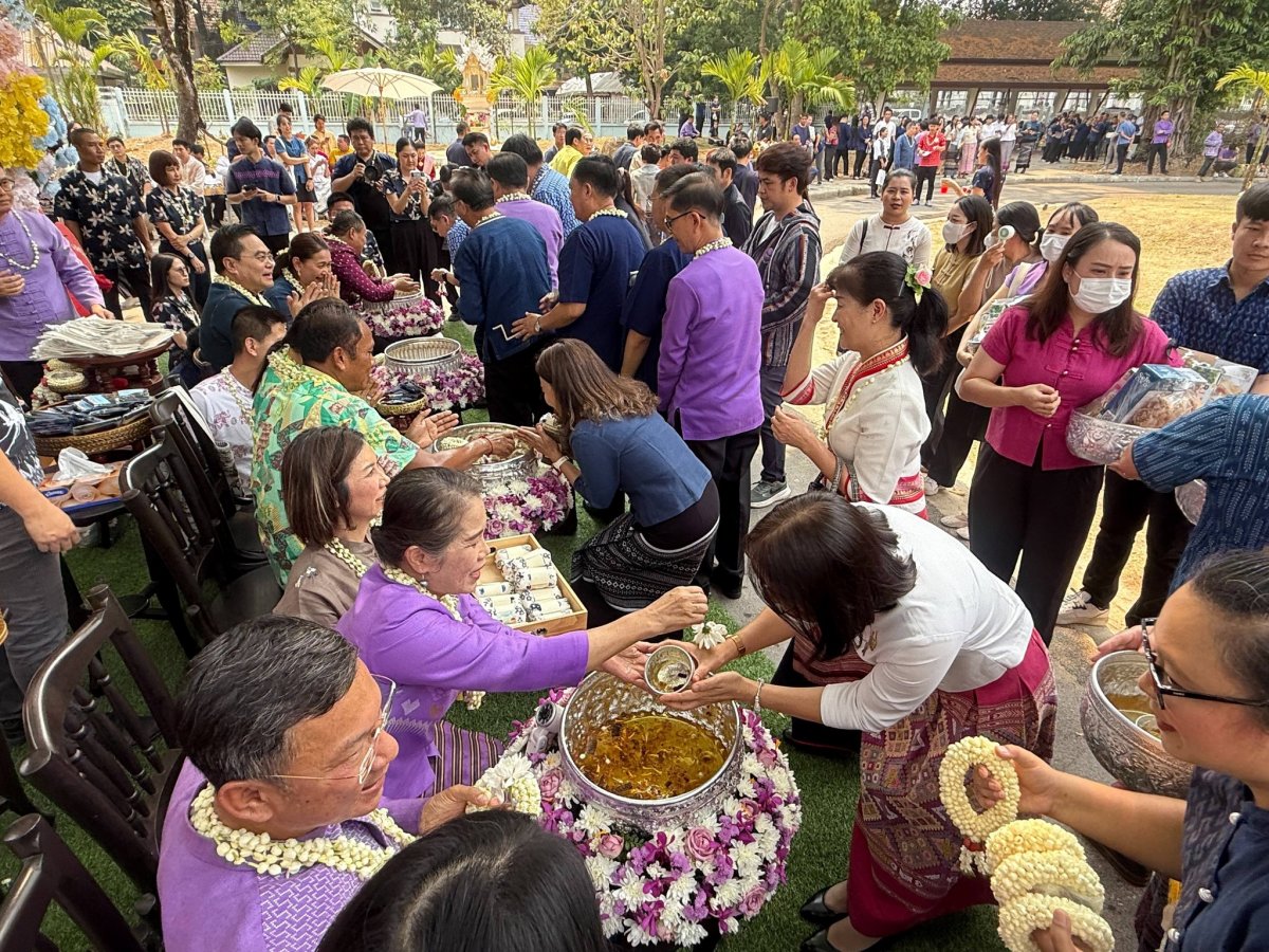 นางฐิติมา เร่งประเสริฐ ศึกษาธิการจังหวัดเชียงราย มอบหมายให้ นางสาวจันทร์แสง พรมสี รองศึกษาธิการจังหวัดเชียงราย นำคณะร่วมพิธีสูมาคารวะสระเกล้าดำหัว ป้อเมืองเจียงฮาย ป๋าเวณีปี๋ใหม่เมือง ประจำปี 2569 ณ จวนผู้ว่าราชการจังหวัดเชียงราย อำเภอเมืองเชียงราย จังหวัดเชียงราย